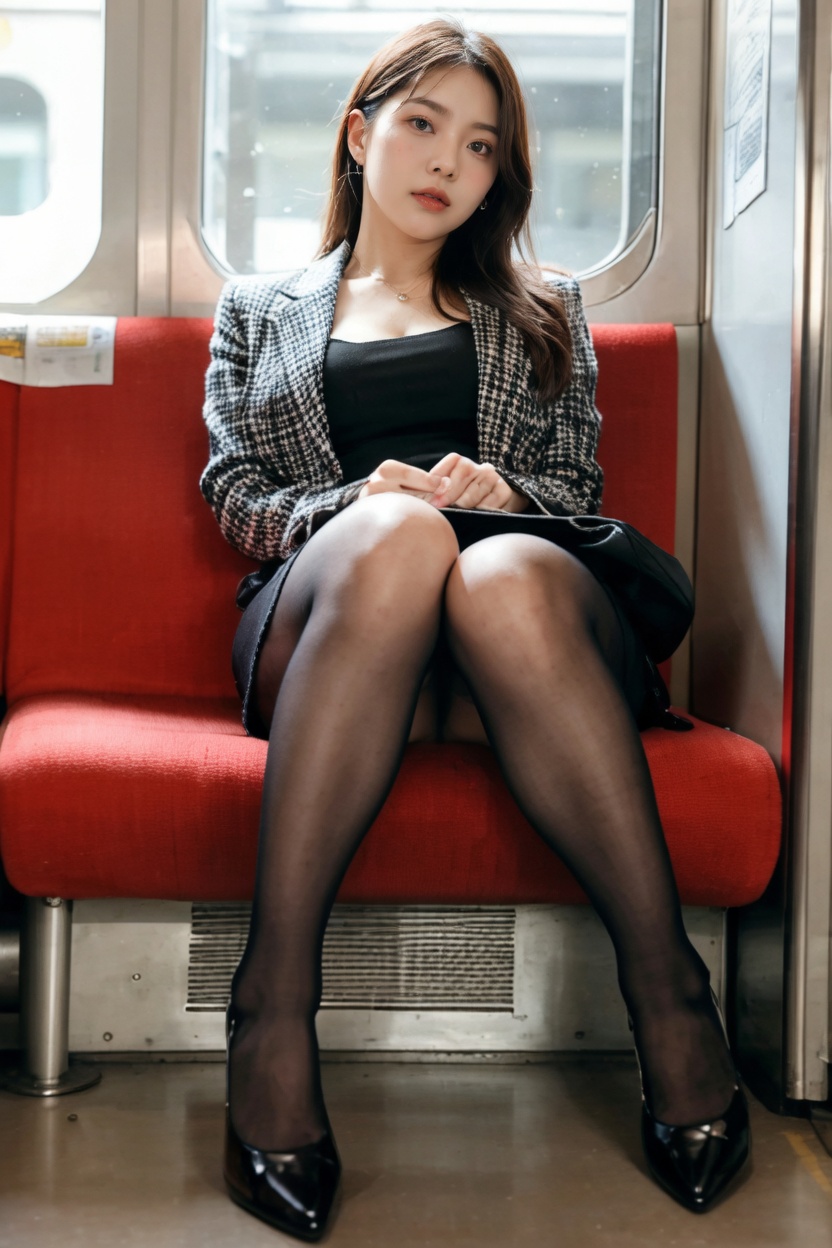 電車OL対面パンチラ
